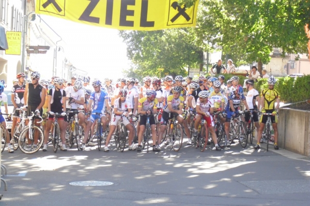So war’s dann auch. Nach dem Start ging es geschlossen in einem ca. 100 Fahrer starkem Feld bis zum kurzen aber heftigen Anstieg beim Grenzübergang nach Slowenien. Meine 350W Schnitt (bzw. 5,3W/kg) reichten nicht um ganz vorne mitzuhalten. War am Ende einer 2. Gruppe so rund um Platz 25. In der Abfahrt und auf den ersten Kilometern im Drautal ist dann aber wieder alles zusammengerückt. Auch von hinten sind noch recht viele Fahrer aufgefahren (vollständig war das Feld aber denk ich nicht). Ausreissversuche auf dem flachen Stück im Drautal wurden allesamt vereitelt und so ging es geschlossen zum 10km und 1000 Höhenmeter Anstieg auf die Soboth. Dort wurde gleich am Anfang ordentlich Tempo gefahren. Ich habe versucht mein eigenes – geplant waren 300W – durchzuziehen. Ca. 10-15 Fahrer sind vorne weg gefahren. Leider bin ich unten zu gierig gewesen und den ersten Kilometer mit 330W, den zweiten mit 310W usw. gefahren. Nach 4km waren’s dann schon unter 300W und bis oben hin bin ich kontinuierlich eingegangen – am letzten Kilometer waren’s noch 250W und die 13% Passagen im Wiegetritt eine echte Qual. Auf der Abfahrt hat sich dann rasch eine 9 köpfige Gruppe gefunden mit der ich bis zum Ziel (Platz 22) mitgerollt bin.