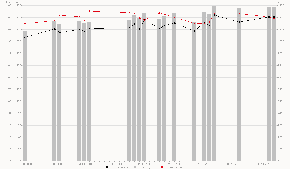 Durchschnittliche Watt um ca. 20W gesteigert bei gleichem Puls