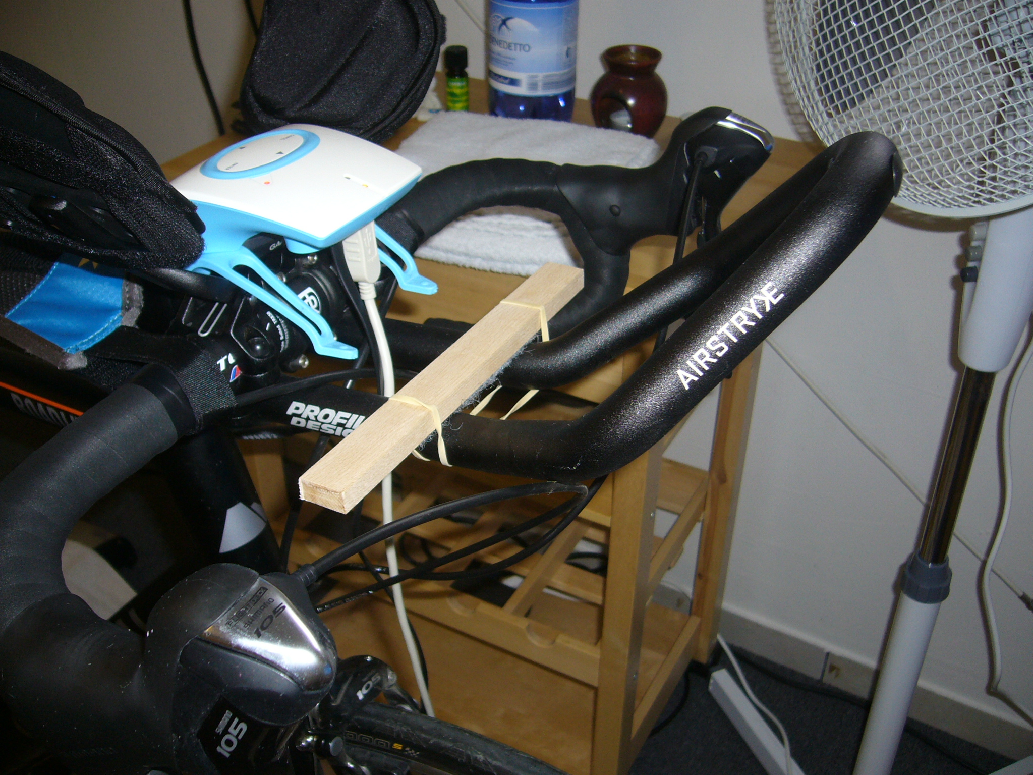 Ausserdem musste ich mir, nachdem mein Rad gestohlen wurde, ein neues zulegen. Habe von Canyon das billigste Rad bestellt (Roadlite Auslaufmodell mit 105er Gruppe) und das Hinterrad durch ein Cosmic Carbone SL mit eingespeichter Powertap Pro+ Nabe ersetzt. Das Canyon ist von nun an auch mein Trainingsrad fürs Freie und kann Dank Conti GP4000s Reifen, die auch auf der Rolle wunderbar halten, mit wenigen Handgriffen von der Rolle gelöst und rausgeschoben werden.