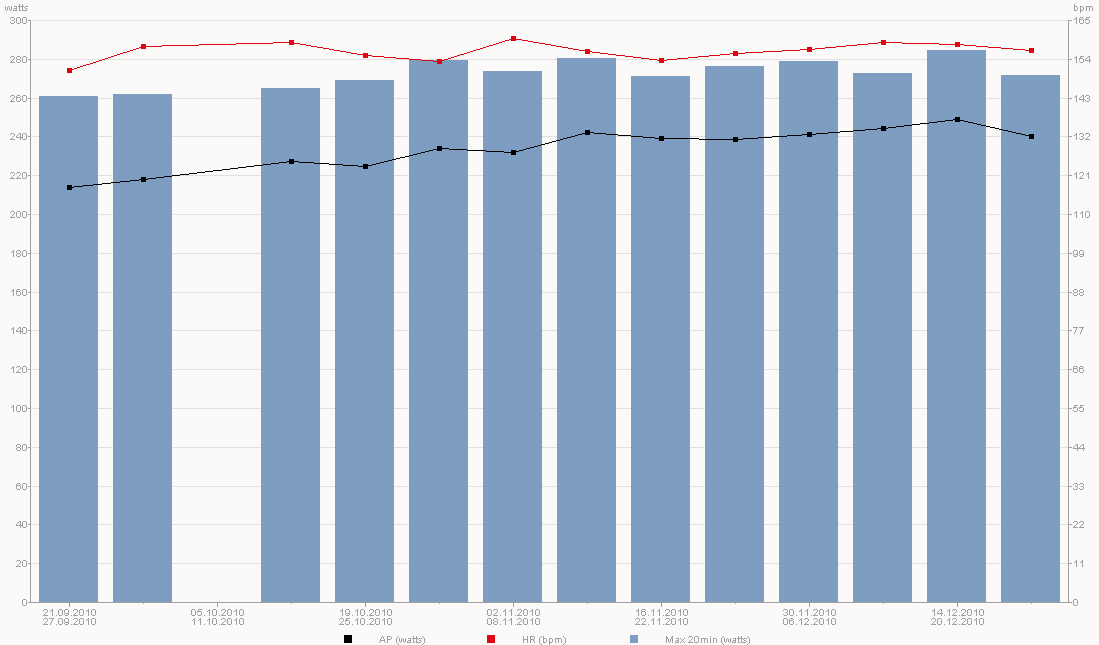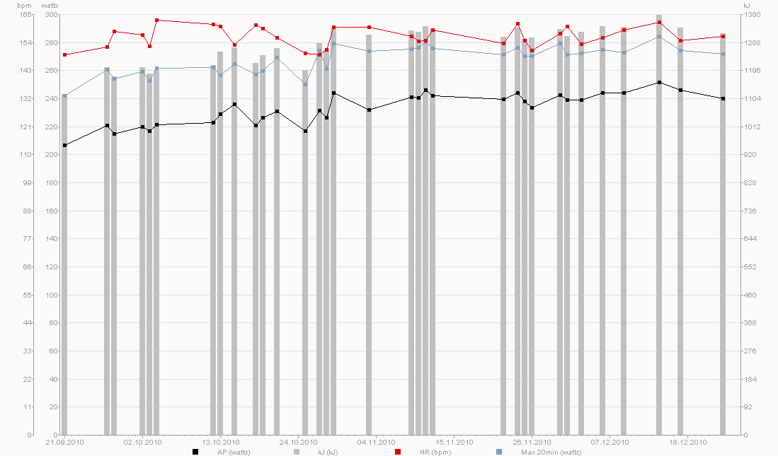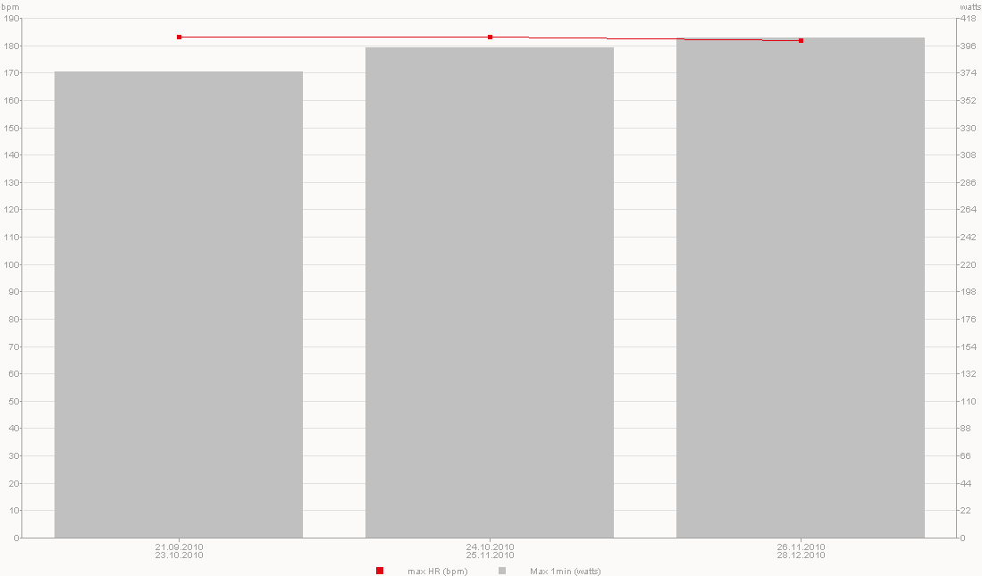 einer Art Trainingsstagnation gekommen. Eine bessere Periodisierung hätte vielleicht mehr gebracht. - Anhand der VCF Rennen kann ich ungefähr meine derzeitigen Leistungen mit denen des Vorjahres vergleichen und danach bin ich derzeit ungefähr auf dem selben Leistungsniveau auf dem ich heuer im Juni (= Höhepunkt 2010) war und fahre regelmässig neue Bestzeiten in der