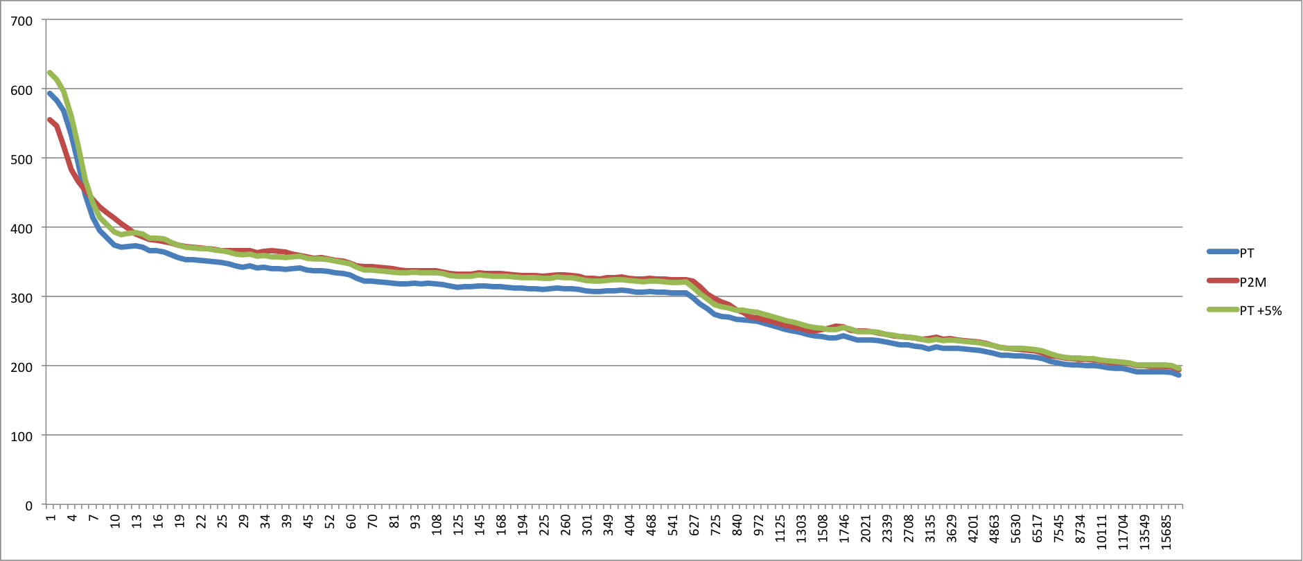 Während der Trainingswoche auf Mallorca hatte ich die Gelegenheit mein Powertap Hinterrad auf einem Rad zu fahren, das auch mit einem Power2Max System ausgestattet war. Parallel wurde mit einem Edge 500 & 800 aufgezeichnet. Die Auswertung danach sollte zeigen, ob die (zu hohe) Abweichung von ca. 5%, die ich aus einem statischen Belastungstest ermittelt habe, auch tatsächlich stimmt.