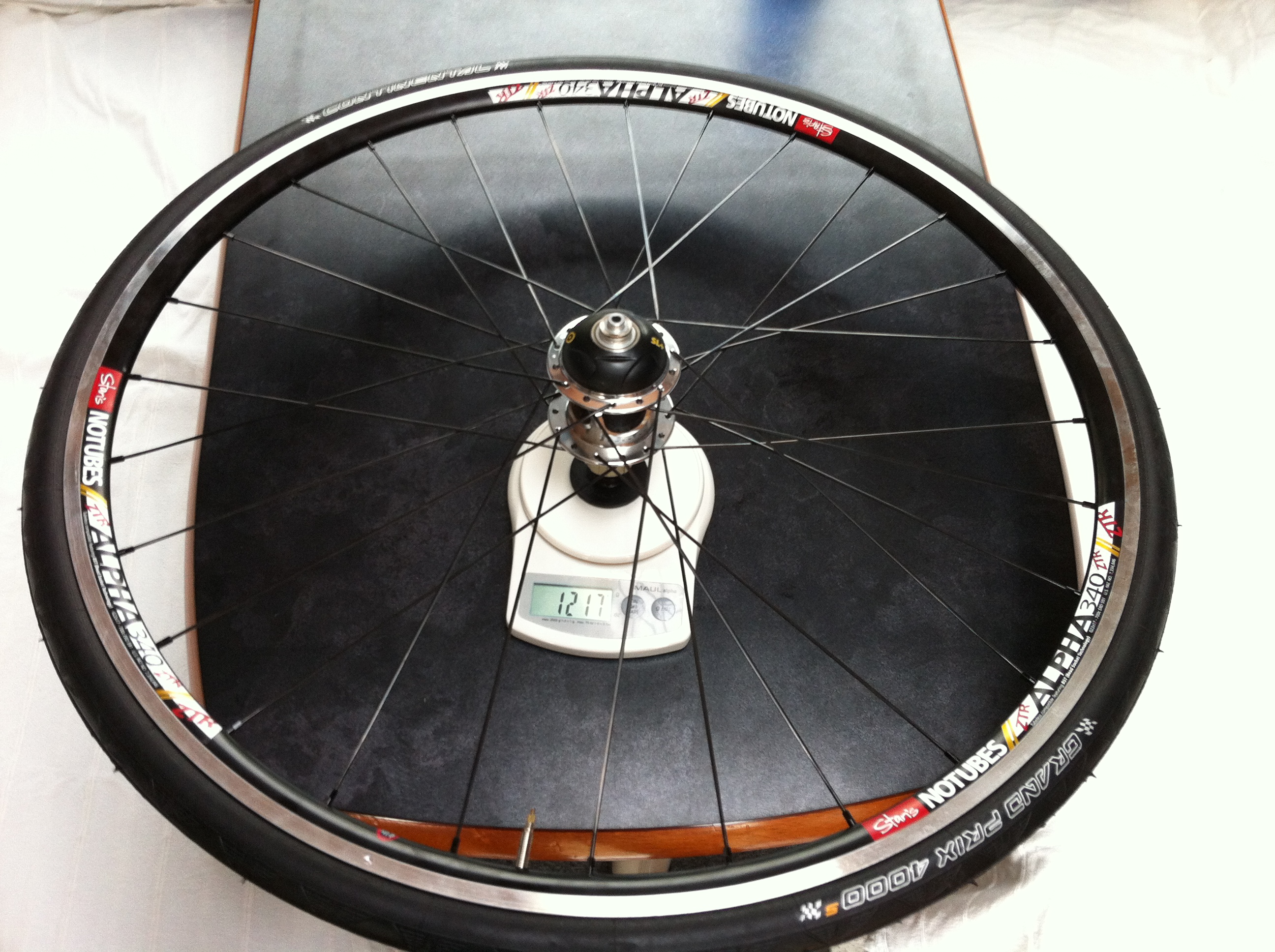 Etwas über 1200g mit neuen Conti GP400s und Conti Race Light Schlauch