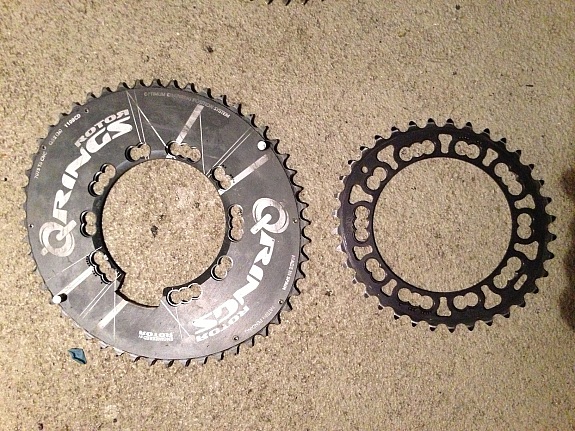 Wie ich schon in meinem Artikel im Vorjahr beschrieben habe, muss man alle nicht OPC3 Rotor Q-Rings mit 110mm Lochkreis zuschneiden, damit sie mit einem Power2Max Leistungsmesser kompatibel sind.