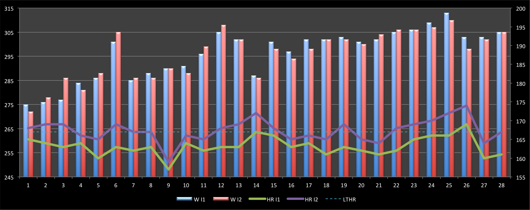 2x20min@95-100% – 28 Einheiten von Anfang November 2012 bis Mitte März 2013.