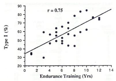 Zusammensetzung der Muskelfasern nach Trainingsjahren bei Elite Radfahrern (Quelle)