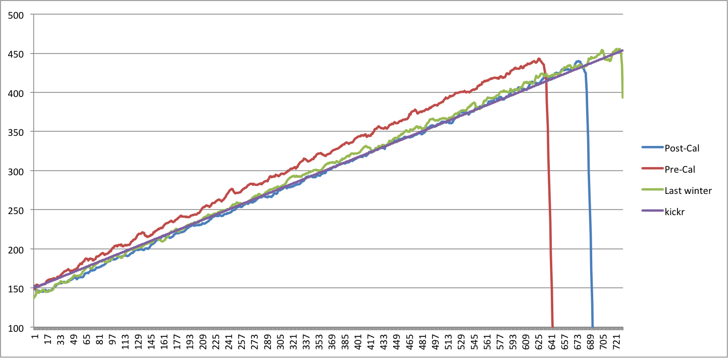 Nachdem mein Kickr über den Sommer offensichtlich ordentlich aus dem Ruder gelaufen ist – die Vector Pedale lieferten beständig wesentlich höhere Werte als üblich – habe ich mir von Martin Ganglberger (bikeboard) das Kickr Calibration Kit ausgeborgt und damit meinen Kickr neu kalibriert. Davor und danach bin ich jeweils einen Stufenleistungstest gefahren.