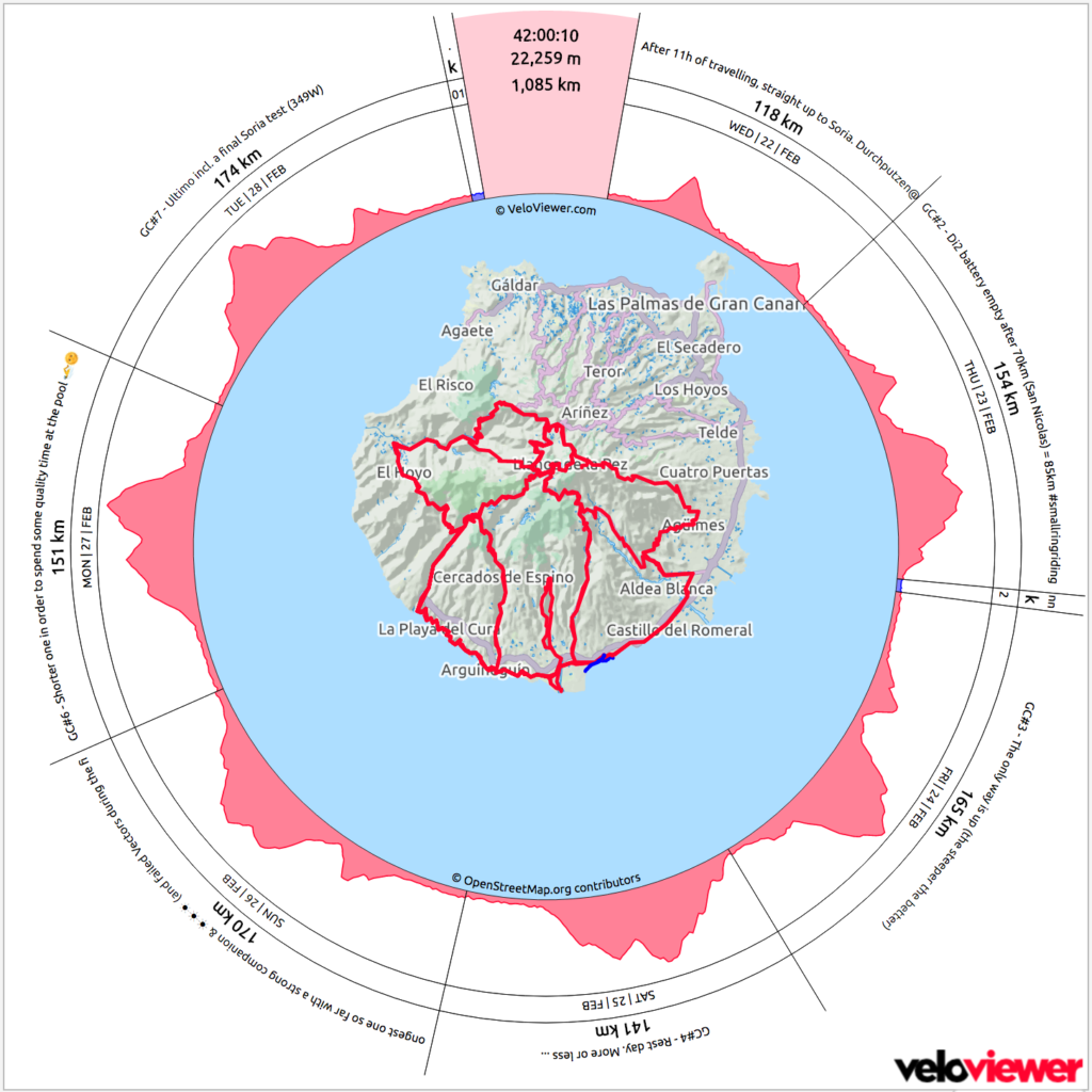 Die Taktik war daher an den Anstiegen nie mehr als 270W zu fahren. In den Flachpassagen keinesfalls etwas aus dem Tank zu saugen, d.h. unter 200W zu bleiben. Speziell dort wo es heiss ist, auch etwas lockerer zu fahren damit ich nicht übermässig viel Wasser rausschwitze – das ja auch irgendwie wieder in den Körper rein muss.