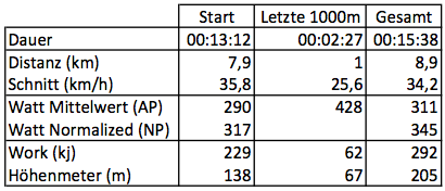 Viel interessanter als das Trainingslager war dann aber die Frage ob es denn auch den Superkompensationseffekt bei mir geben würde. Daher habe ich am Ende der Regenerationswoche den Traunsee RM bestritten um dies auszuprobieren. Und siehe da, es hat perfekt funktioniert. Neuer 5min und 15min Bestwert.