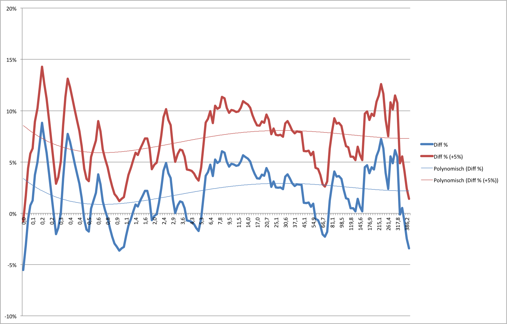Differenz MeanMax Chart 2010 zu 2011 – X-Achse ist Zeit in Minuten, Y-Achse max. durchschnittliche Watt