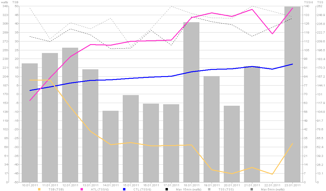 Wenn ich mir die Wattzahlen so im Nachhinein ansehe, scheint das Superkompensationsprinzip zu funktionieren … neuer 5min & 15min Bestwert.